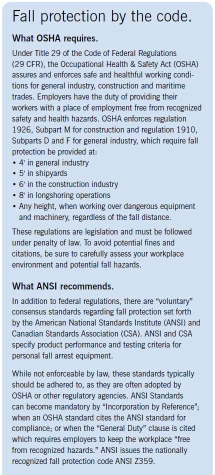 The requirements of OSHA’s Fall Protection Standard, 29 CFR 1926, Subpart M, as well as to provide other helpful information. It is not intended to supersede the requirements of the standard. An employer should review the ... Access Full Source